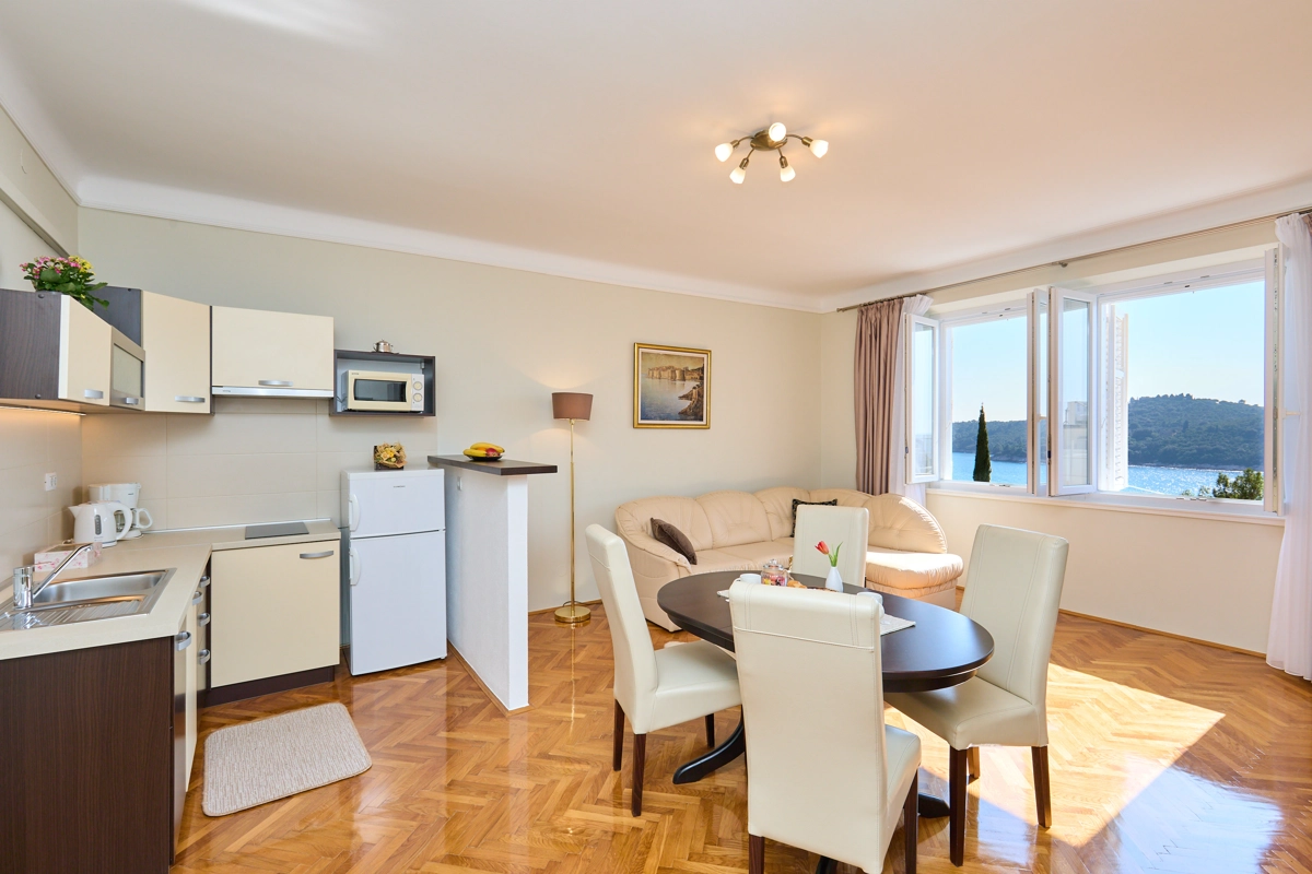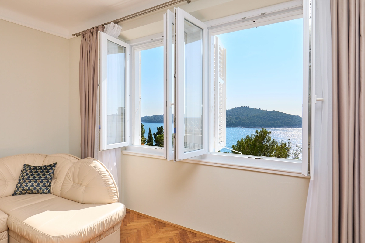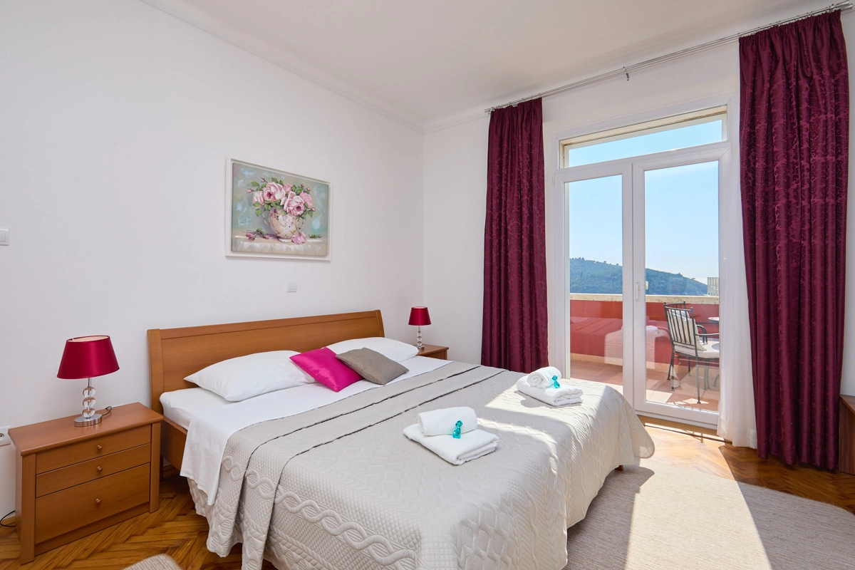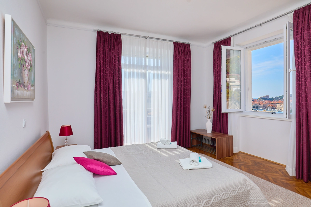 The apartment is a bright & spacious 2-bedroom apartment located just a few minutes walk from Dubrovniks old town. The apartment benefits from a balcony with a beautiful view of the old town walls, Lokrum Island & the idyllic Adriatic sea. The apartment consists of 2-large bedrooms, one ensuite, spacious living room with a view over Lokrum, kitchen, an additional bathroom & a private parking space. Within walking vicinity of the apartment is a shop, Banje Beach, as well as numerous restaurants