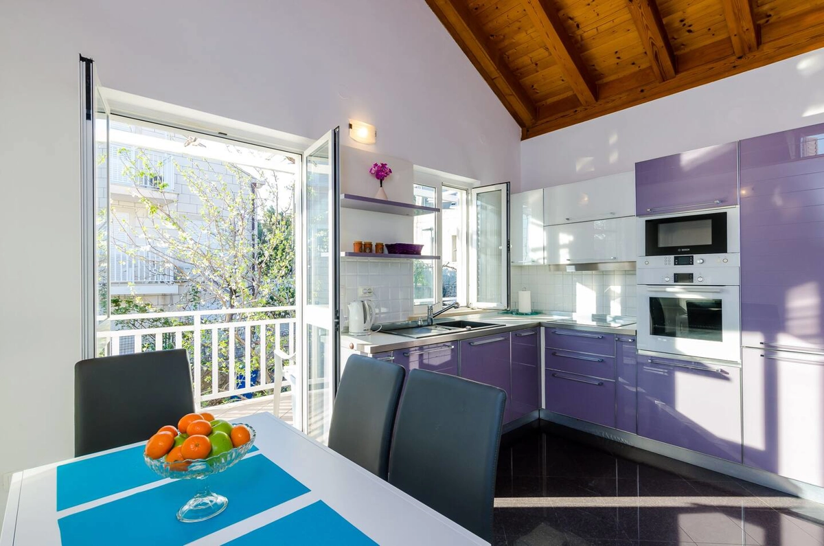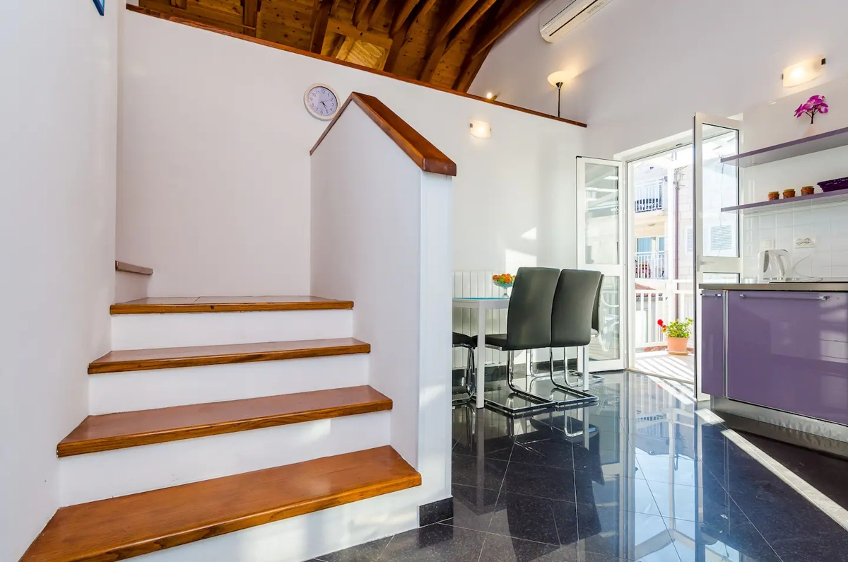Apartment Vito is a 2 bedroom duplex apartment with a view over the Old Town and Fort Lovrenjac! The apartment is open, airy & spacious so guests can really spread out & relax. The apartment consists of 2 bedrooms (both air conditioned), a living room, large kitchen, external balcony and bathroom. Crucially for Dubrovnik there is a free parking space immediately in front of the apartment. For those that love hiking the trail for Mount Srd starts just above the apartment