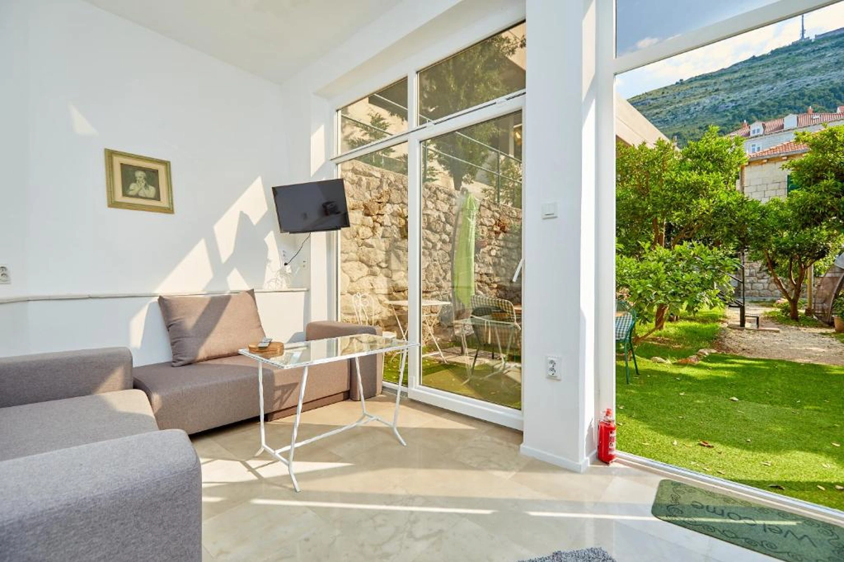 Apartment Villa Ahava Buza is a studio apartment set within a beautiful garden space for guests to enjoy. The apartment was newly renovated in winter 2020 so benefits from all modern facilities including air conditioning and wifi throughout. Guests are free to enjoy the beautiful garden with patio furniture and a hammock provided. The apartment is located within a 5-10 minute walk to the main gates of the Old Town and within a 2 minute walk from shops, a bakery and a local eatery/cafe.